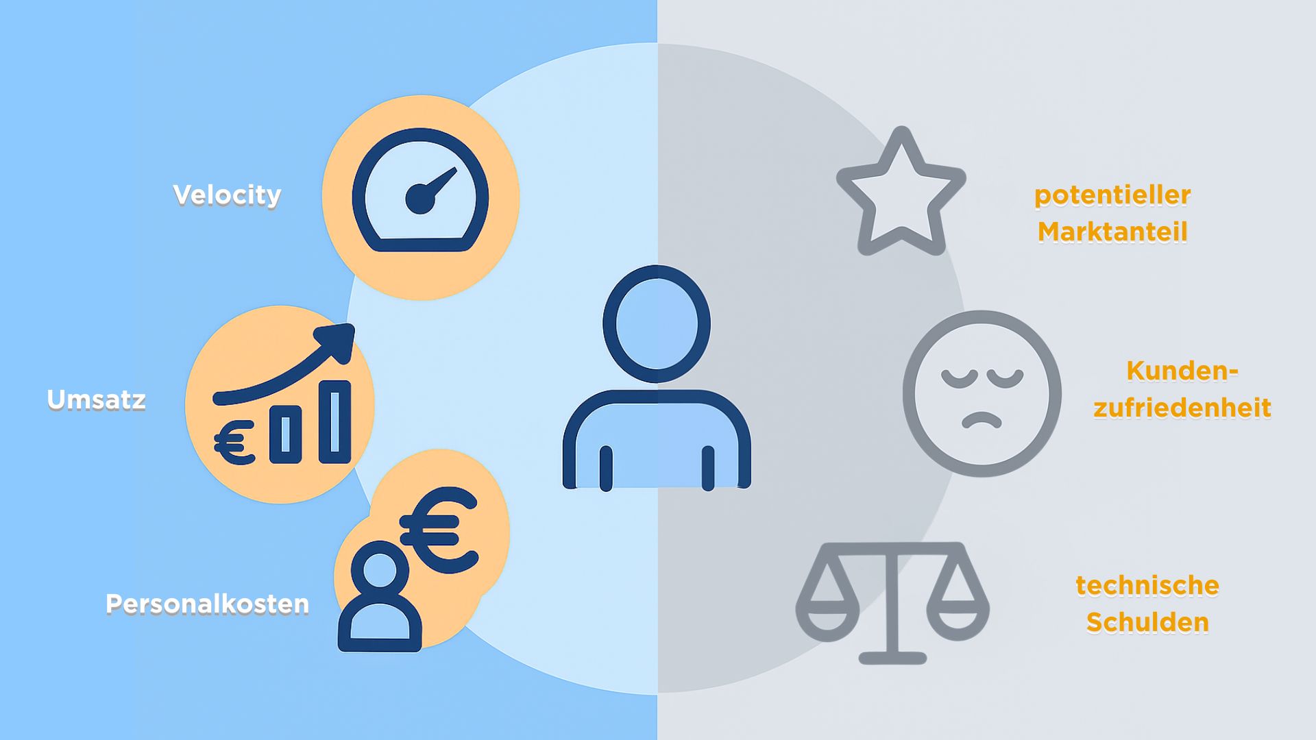 Häufig werden quantitative Daten als einzig relevante Entscheidungsgrundlage herangezogen. Nur weil bestimmte Kennzahlen leicht verfügbar sind – etwa Velocity, Umsatz oder Personalkosten – gelten sie als objektiv und ausreichend. Schwer messbare Faktoren wie Qualität oder Kundenzufriedenheit bleiben dabei außen vor.